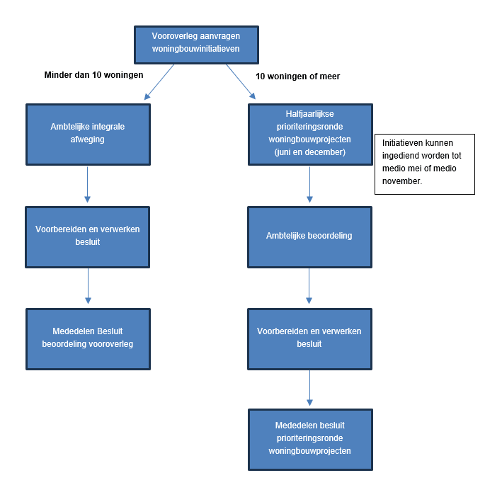 Heb je een bouwplan of wil je grond ontwikkelen? Dan kun je een zogeheten vooroverleg aanvragen. Hiervoor kennen we twee sporen, zie de afbeelding hieronder. Meer informatie over het aanvragen van een vooroverleg lees je op deze webpagina.