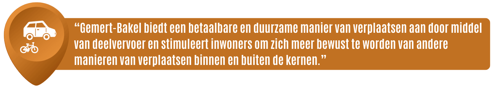 Deelvervoer is een goed idee omdat het een duurzame manier is, je rijdt in een nieuwe auto zonder dat je zelf aanschaf- en onderhoudskosten hebt. Daarnaast is het een duurzame keuze omdat elektrische deelauto's minder CO2 en fijnstof uitstoten. Ook vervangt een deelauto ongeveer 6 auto's waardoor er meer ruimte ontstaat. Hoe meer inwoners en bedrijven meedoen, hoe meer deelauto’s geplaatst kunnen worden in Gemert-Bakel.