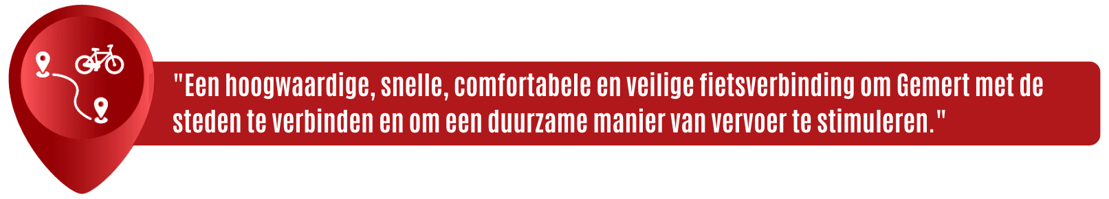 Veel mensen pendelen dagelijks met de auto tussen Gemert en Helmond. Door het aanbieden van goede en veilige fietsvoorzieningen ontstaat een gezond en milieuvriendelijk alternatief voor de auto. Een snelfietsroute Gemert-Laarbeek-Helmond maakt fietsen over grote afstanden extra aantrekkelijk, vooral voor woon-werkverkeer. Om de snelfietsroute tussen Gemert en Helmond een succes te laten worden is het nodig dat gemeenten en provincie eerst de optimale route kiezen. Die onderzoeken we nu in een zogenaamde tracéstudie. Daarna maken gemeenten en provincie afspraken over de realisatie in een bestuursovereenkomst.
