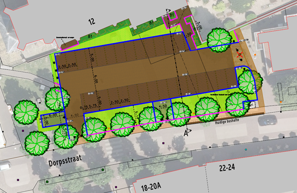 - Parkeerplaatsen op het plein: de parkeerplaatsen worden met dichte bestrating aangelegd, in plaats van met grasstenen. De dichte bestrating past beter bij de omgeving. Door intensief gebruik van de parkeerplekken komt de groene uitstraling van grasstenen onvoldoende tot z’n recht. En grasstenen zijn minder geschikt als ondergrond voor evenementen.